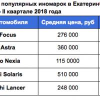 Среди зарубежных производителей самыми популярными моделями у екатеринбуржцев стали Ford Focus (4,9% продаж иномарок), Opel Astra (3,4%), Daewoo Nexia (2,4%), Hyundai Solaris (2,3%) и Mitsubishi Lancer (2,3%).