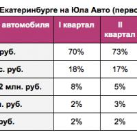 Снижение средней стоимости автомобилей в городе может быть обусловлено ростом спроса в бюджетном сегменте до полумиллиона рублей. Так, если в I квартале 2018 года в Екатеринбурге на Юла Авто доля проданных автомобилей в этой ценовой категории составила 70%, то во втором квартале она выросла до 73%.