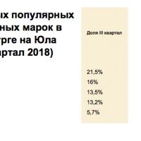 Наиболее распространённым типом кузова автомобиля среди екатеринбуржцев в III квартале на Юла Авто стал седан. Его доля от всех проданных автомобилей в городе — 39%. На втором месте оказался хетчбэк (25%), на третьем — кроссовер (17%) .