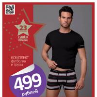 Только в праздничные дни специальная цена на комплект 499 руб. Натуральные материалы подарят легкость и комфорт. Также вы можите подобрать пижамы, халаты, домашние костюмы и брюки, майки, футболки, нижнее белье и носки.