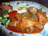 Затем все соединить, добавить хмели-сунели и сметану и тушить еще минут 10.