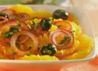 Лук и маслины выкладываю на апельсины. Если кому-то не нравится горечь лука, можно ошпарить его кипятком. Но тогда "хрустящести" не будет.