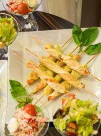 Шашлычки из рыбы не только вкусный вариант закуски, но и оригинальное украшение стола.