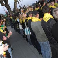 Восьмое мая оказался весьма насыщенным днем для студентов и преподавателей ЕФ «УралГУФК», четыре мероприятия были запланированы в этот предпраздничный день. Начался он с утренней уборки аллеи на Большакова, студенты готовили площадку у памятника «Войнам-спортсменам», для предстоящего митинга, который начался в 13:45. В этом году в митинге приняли участие не только студенты СУЗов и ВУЗов Ленинского района, но и воспитанники ДЮСШ города Екатеринбурга, которые прошли дружной колонной от площади 1905 года до памятника. На митинге поздравление с предстоящим праздником прозвучали от первых лиц города Екатеринбурга, администрации города, ветеранов войны, заслуженных спортсменов. Закончилось это массовое мероприятие возложением цветов к памятнику «Войнам спортсменам», поздравлением ветеранов, но, а в завершении в небо пустили тысячу шаров белого, синего и красного цветов, символизирующих флаг России. Чуть позже в парке Чкалова состоялась 47 легкоатлетическая эстафета, посвященная 65-й годовщине Великой победы. В упорной борьбе команда ЕФ «УралГУФК» заняла почетное второе место, но, а традиционно победу одержала команда УОРа. Закончился этот день, не менее, прекрасным мероприятием «Зажжением огня памяти» на акватории городского пруда. Пять колонн, каждая из которых состояла из пятисот студентов, двинулись одновременно от УрГУ и Оперного театра. Колонны шли за машинами, которые были оформлены в стиле соответствующего военного года. Студенты облачились в желтого цвета платки, каждый держал в руке зажженную свечу и медленно в шеренгах шаг за шагом продвигались к «плотинке», скорбя о погибших на войне солдатах. На «плотинке» состоялся митинг, после которого молодежь Екатеринбурга почтила погибших на войне минутой молчания. Удивительная тишина воцарилась тогда над городом, что даже стало немножко жутко. В это время люди в белой одежде с зажженными факелами зашли на катер, и сделав круг, зажгли звезду, установленную на воде Исети, прогремели выстрелы – и все присутствующие наслаждались великолепным салютом. Принимавшая участие молодежь почувствовала дух старого времени, на фоне «нового» патриотизма. Данное мероприятие стало толчком для сплочения молодого поколения.