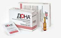 Для приготовления раствора для внутримышечных уколов смешивают по одной ампуле раствора и растворителя. Вводят препарат Дона три р/нед. по 3мл. Терапевтический курс длится 4-6 нед.