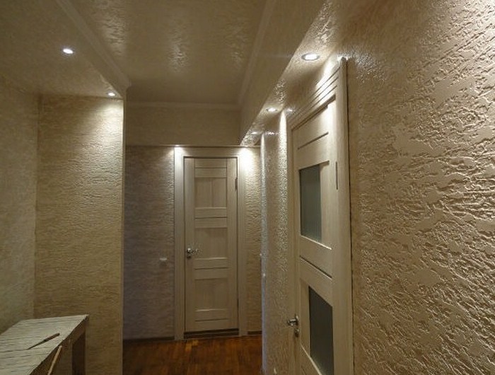 Уникальным решением в интерьере будет отделка плоскости стен декоративной штукатуркой. Данное покрытие пригодно к многоразовому окрашиванию и шлифованию. Что выгодно отличает её от других видов отделочных материалов. Нанесение этой смеси можно производить даже на потолочную плоскость и другие горизонтальные поверхности. Ассортимент такой продукции на современном рынке строительных материалов довольно велик, и востребован в ремонтно-отделочных работах.