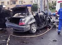 Рано утром на Сухаревской площади в Москве лоб в лоб столкнулись автомобили "Мерседес" и "Хендай Санта Фе" - .погибли четыре человека, еще четверо получили ранения.