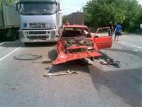 ДТП произошло в Зеленограде, во 2-м Западном проезде. Майор полиции за рулем автомобиля Nissan Sirena не справился с управлением и врезался в припаркованный грузовик Volvo.