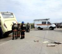 Авария произошла на 10-м километре Покровского тракта. Маршрутный автобус, следующего рейсом по маршруту Табага-Якутск, столкнулся с внедорожником Toyota Land Cruiser.