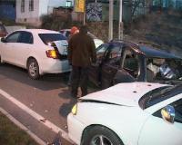 Днем вторника на улице Промывочная автомобиль "Тойота" на большой скорости протаранил припаркованный у обочины автомобиль, после чего "Короллу" откинуло на еще одну машину, которая, в свою очередь, наехала на двух пешеходов, стоявших рядом.