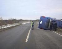 ДТП произошло утром субботы на автодороге Тимашевск-Славянск. Автобус, следовавший из Крыма в Ярославль, столкнулся с выехавшим на встречную полосу автомобилем "Шевроле Нива" и опрокинулся.