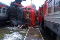 Электричку угнали с территории депо. На выезде она столкнулась с прибывающим электропоездом.