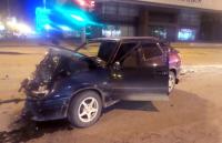 Автомобиль Renault Logan стоял на светофоре, когда в него на полной скорости врезался ВАЗ-2114.