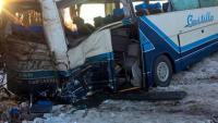 Сегодня утром в Ленинградской области на 158-м километре трассы "Скандинавия" туристический автобус с 36 пассажирами на борту столкнулся с грузовиком.