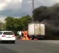 Водитель остановил загоревшийся транспорт и успел выскочить из кабины.