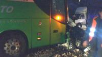 Рейсовый автобус с 40 пассажирами на борту столкнулся с двумя попутными грузовиками МАЗ.
