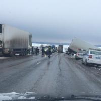 На трассе М5 под Уфой возле Алаторки две фуры и прибывшая на ДТП машина ДПС улетели в кювет