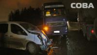 В Екатеринбурге на ЕКАД Citroen протаранил КамАЗ и тягач Volvo