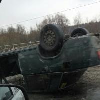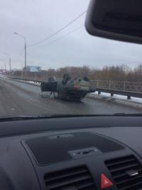 В Рязани на Северной окружной дороге ВАЗ-2105 столкнулся с отбойником и «встал» на крышу