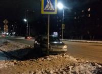 Минувшим вечером в рязанском микрорайоне Горроща около остановки «Школа» водитель автомобиля Renault не справился с управлением и въехал в дорожный знак «Пешеходный переход».