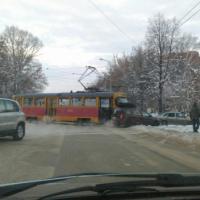 Попытка не удалась. Трамвай со всей дури протаранил гордость отечественного автопрома.