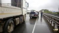 Сегодня днём под Екатеринбургом на 4-м километре ЕКАД между Большим Истоком и Кольцовским трактом грузовик протаранил катафалк Mercedes, который после удара «догнал» Renault Logan.