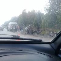 На месте ДТП работают сотрудники ГИБДД и МЧС.