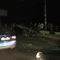 В Астрахани на Новом мосту в ДТП 5 автомобилей перевернулся Ford