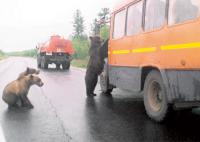 Дикий медведь, вышедший на дорогу, погиб в Томской области под колесами автомобилей.
