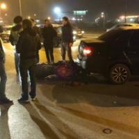В Екатеринбурге на Бебеля у моста по Технической мотоциклист залетел под Lada Granta