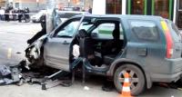 По неустановленной причине машина Honda CR-V пересекла встречную полосу движения и выехала на тротуар, после чего совершила наезд на находившихся рядом с остановкой общественного транспорта пешеходов. После этого автомобиль врезался в столб. Женщину водителя пришлось вырезать из салона машины.
