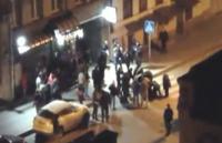 Конфликт на площади Свободы, где митинговали пророссийские силы, начался, когда к группе митингующих подъехал микроавтобус Wolksvagen Transporter, из которого в митингующих полетели петарды.