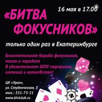 16 мая в 17.00 в большом зале ЦК «УРАЛ» только один раз в Екатеринбурге состоится блистательная борьба фокусников в удивительном ШОУ сюрпризов, иллюзий и волшебства!