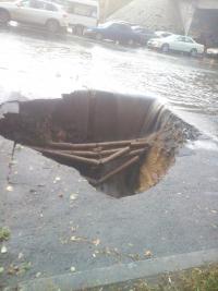 На прекрестке улиц Малышева-Восточная в Екатеринбурге образовался провал асфальта, в то время, когда никаких ремонтных работ на данном участке не было предусмотрено. После ливня, который прошел над городом, образовался провал грунта на пешеходном участке дороги. Под ним проложены оптоволоконные кабели, работы над которыми велись все лето, после того как администрация обязала провайдеров упаковать все коммуникации данного типа под землю.
