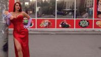 В красивом красном платье и с шаурмой в руках дама завлекала всех мужчин зайти в заведение и попробовать произведения местного повара.