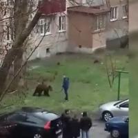Житель Таганрога попал на видео в социальных сетях в то время, как выгуливал медведя без намордника на улицах города. При этом медведь вставал на задние лапы и подходил к мужчине, держащему поводок.