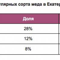 Больше всего предложений о продаже мёда в Екатеринбурге пришлось на июль и начало августа. Чаще всего екатеринбуржцы выбирают крем-мед. На него пришлось 28% всех продаж меда на Юле в городе. На втором месте — цветочный мед с долей в 12%. Замыкает тройку самых популярных сортов меда разнотравье — 8% продаж в этом году.
