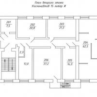 Помещение занимает 2-ой этаж 4-х этажного здания. Общая площадь 250 м. кв., полезная - 178 м. кв., с/у на этаже, 7 кабинетов, площади которых от 7,5 метров до 62 метров. Все коммуникации, место для парковки автомобилей. Помещение офисного/торгово-офисного назначения.