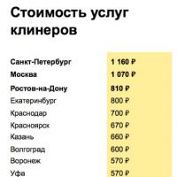 Дороже всего свои услуги оценивают клинеры из Санкт-Петербурга. Часовая стоимость их услуг на Юле составила в среднем 1 160 рублей. Немного дешевле — в Москве (1 070 рублей в час) и Ростове-на-Дону (810 рублей). А самые низкие цены на Юле зафиксированы в Омске (440 рублей в час), Перми (500 рублей) и Самаре (550 рублей).