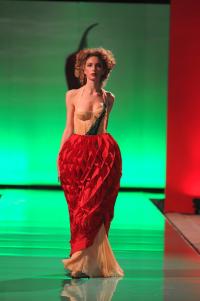 Коллекция обыгрывает ПЕРЕЦ в восьми моделях под интригующими названиями: «Наездница», «Водитель машинки», «Девочка-романтик», «Попа-сердечко» и другие. Каждый наряд потрясает воображение по-своему. Костюм «Авиатор будущего» весит 5 кило, зато в набедренный перец-самолет встроен вращающийся пропеллер с движком, который заполняет модель воздухом. А костюм «ПерцеПтичка» побил рекорд длины — целых 4 метра!