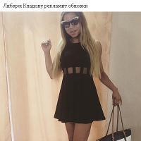 - Скорее всего, реклама какого-нибудь магазина. А ей чего - заплатили - она рекламирует... Платье слишком короткое, хотя и красивое, притягивает взгляд на черные коленки, а это не всегда красиво. Очки сами по себе не плохи, но Либе они не идут. Волосы не уложены и не ухожены, смотрятся как распущенный лошадиный хвост. Образ, в общем, не получился... Нуууу, Либа вкусом никогда не отличалась, достаточно вспомнить ее странный клетчатый костюм и бантики в волосах...