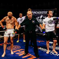 Уральский средневес Олег Оленичев, выступающий нынче за БК “Ратиборец”, известен тем, что сумел пройти жесткий отбор в тренировочный лагерь “Tiger Muay Thai”. Тренируясь в Тайланде, Олег попробовал свои силы во многих известных турнирах азиатского региона. В эту субботу десятая по карду схватка Олега Оленичева и Дмитрия Арышева из “Sech Pro” держала в напряжении весь зал. Постоянный переход из стойки в борьбу и обратно.Все три раунда — броски, демонстрация ударной техники и навыков партера. Дмитрия подвел не совсем верный план на бой - Олег не принял предложение биться в стойке, предпочитая следовать своему сценарию. Обмен ударами чередовался с вариациями клинча, переходящими в амплитудные броски со стороны Олега. По итогам подсчета очков победа у Оленичева.