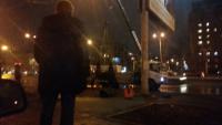Очевидцы засняли, как через несколько часов вечером люди в защитных костюмах увезли погибшую лошадь на манипуляторе.